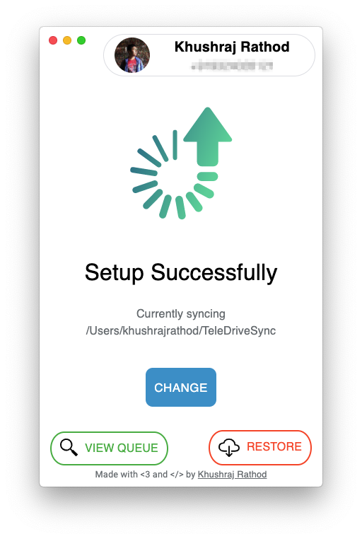 Select a folder to sync and TeleDrive will scan it for changes automatically!